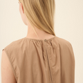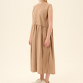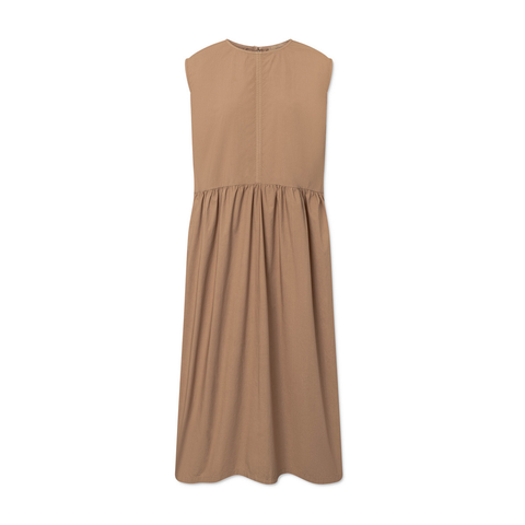 Diane Kjole fra Rue de Tokyo er en ærmeløs kjole i 100 % økologisk bomuld med en let og elegant silhuet. Kjolen har rund hals og lukkes med en lille knap i nakken. Rynkedetaljer i taljen giver et flot fald, der er skjulte side lommer.