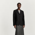 An elegant blazer made from a heavy wool canvas weave. The blazer has a classic fit, welt pockets and interior contrasting stitching, which together create a unique and distinctive look.