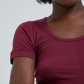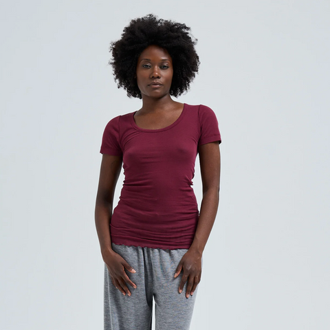T-shirt fra Seamless Basic med dyb rund halsudskæring og korte ærmer. Halsudskæring er med ribkant og blusen er overlocked i bunden. Produceret i let og blød bomuld.