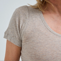 T-shirt fra Seamless Basic med dyb rund halsudskæring og korte ærmer. Halsudskæring er med ribkant og blusen er overlocked i bunden. Produceret i let og blød bomuld.